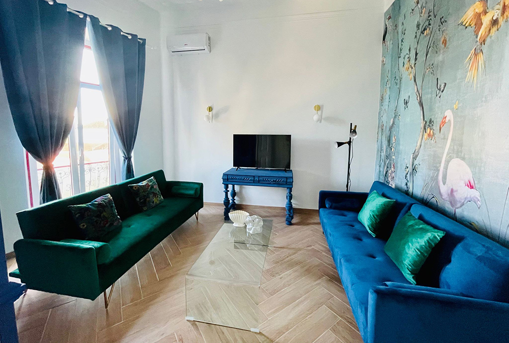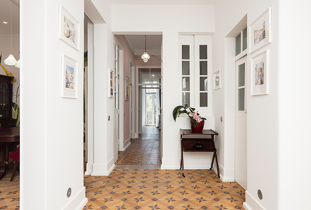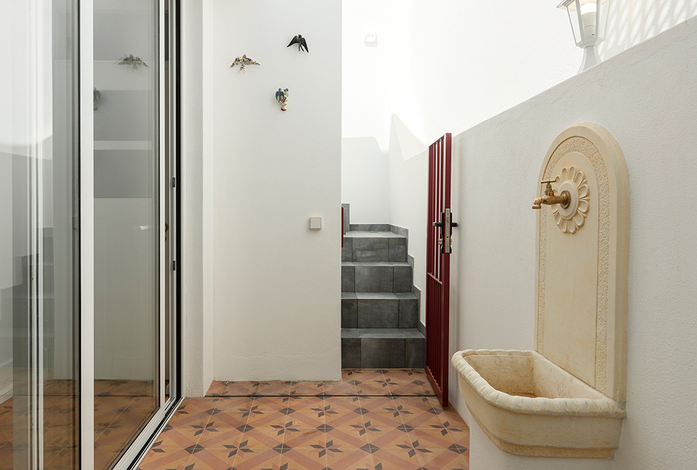This stylish, almost century-old town house in the centre of Faro was completely renovated in 2023, preserving its original character (high ceilings, decorative mouldings, cement tiles) in a style that is both contemporary and authentic, opens up above a double flight of stone steps. | ||